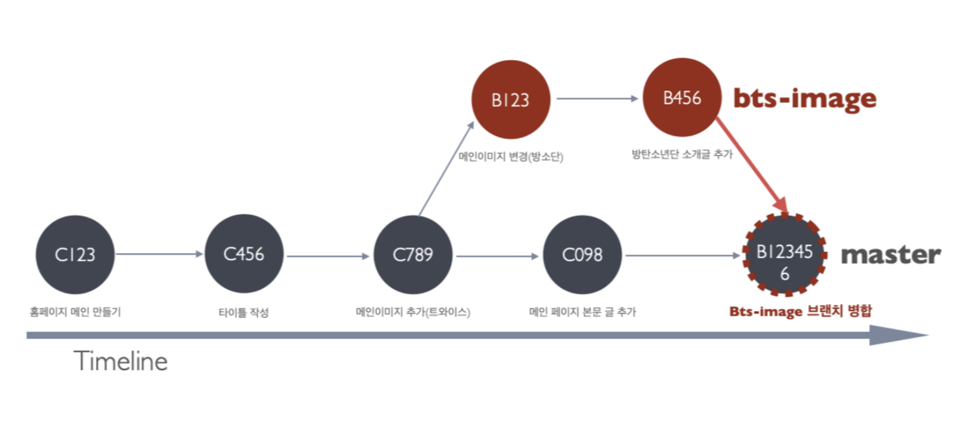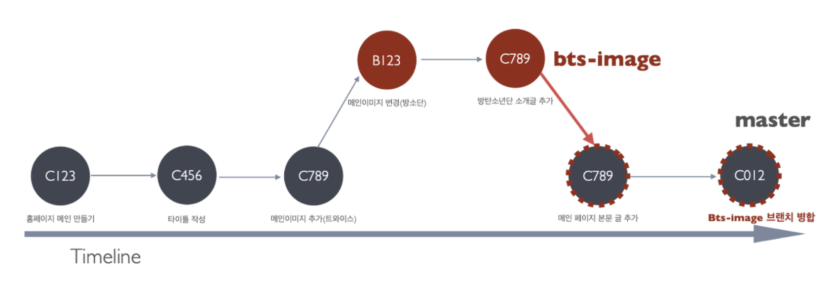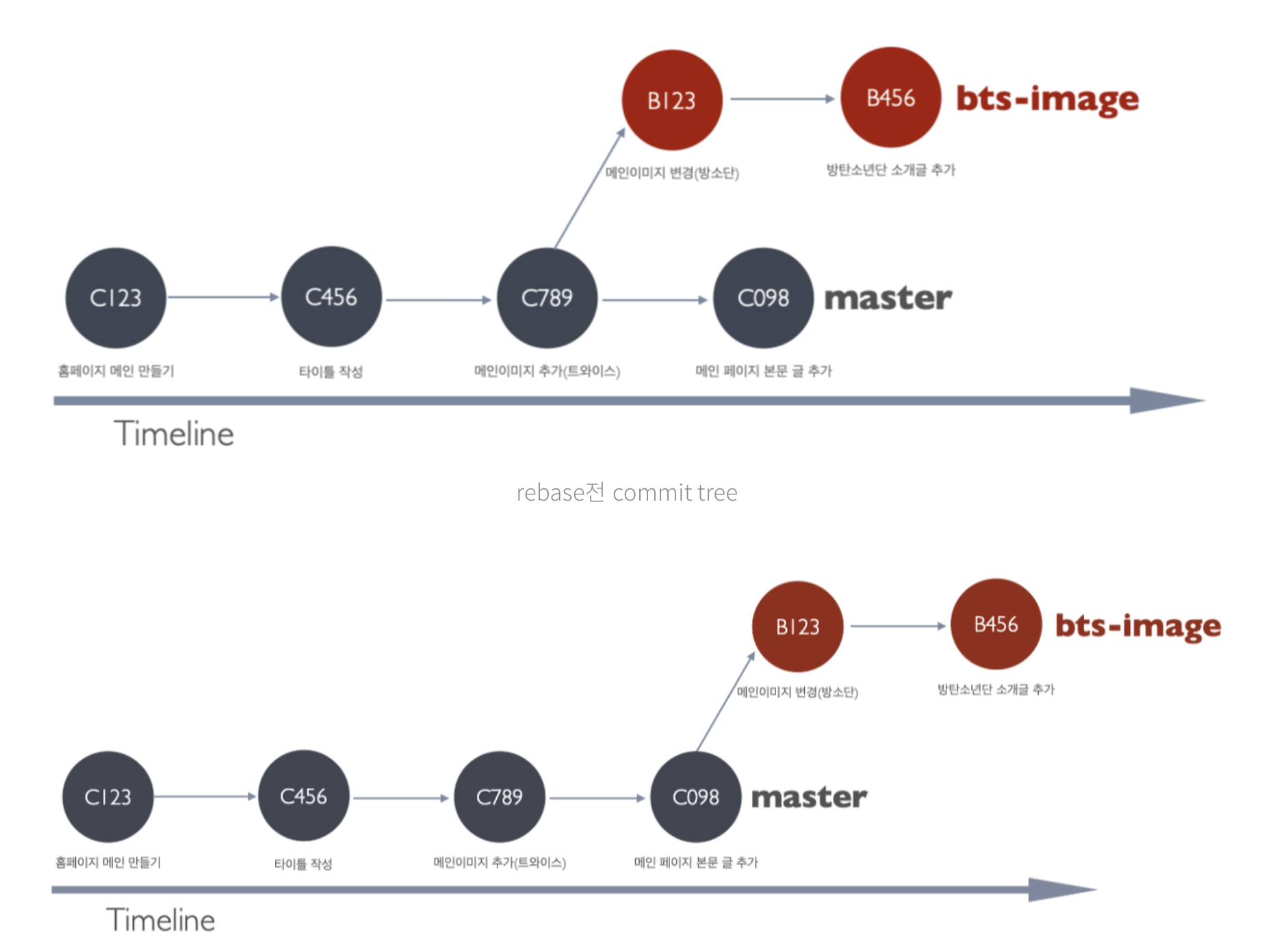 하지만 master 대신에 bts-image에 병합하기 전에 master를 리베이스하면